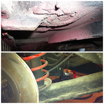 Geographically the car had been in use in the country of Sweden almost since new, Sweden being a country that has long winters and the fact that they use salt the car was covered with a protective oil based coating underneath, Tectyl or similar. Since the use of this car is now changing from being someones daily driver back in the 70′ and 80′, to a recreational vehicle I want to remove the protective coating and just have painted surfaces on the undercarriage components.