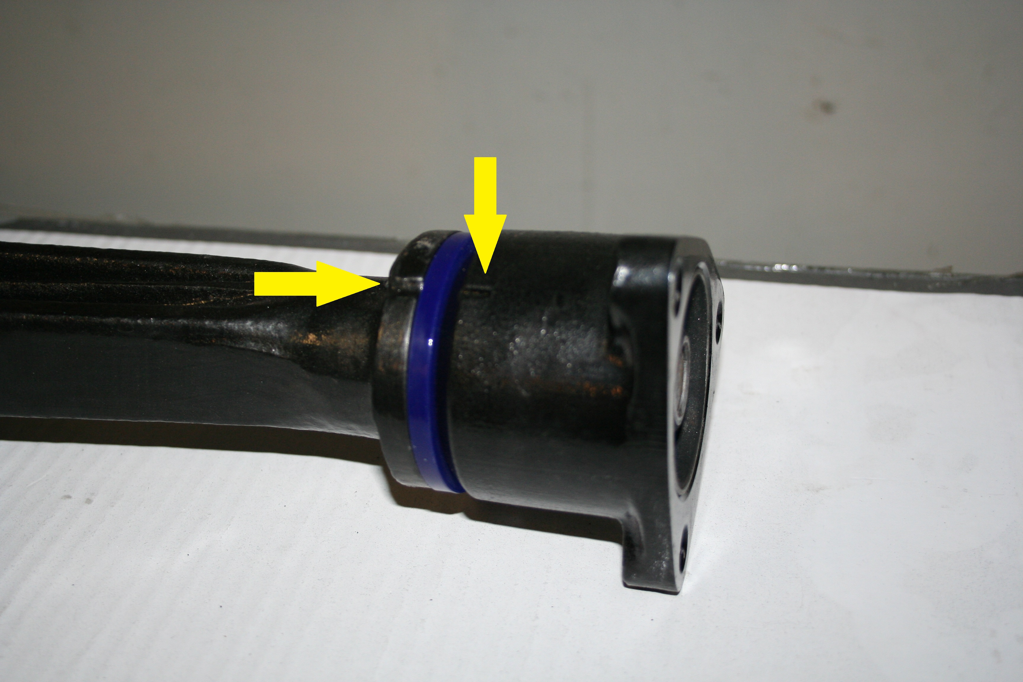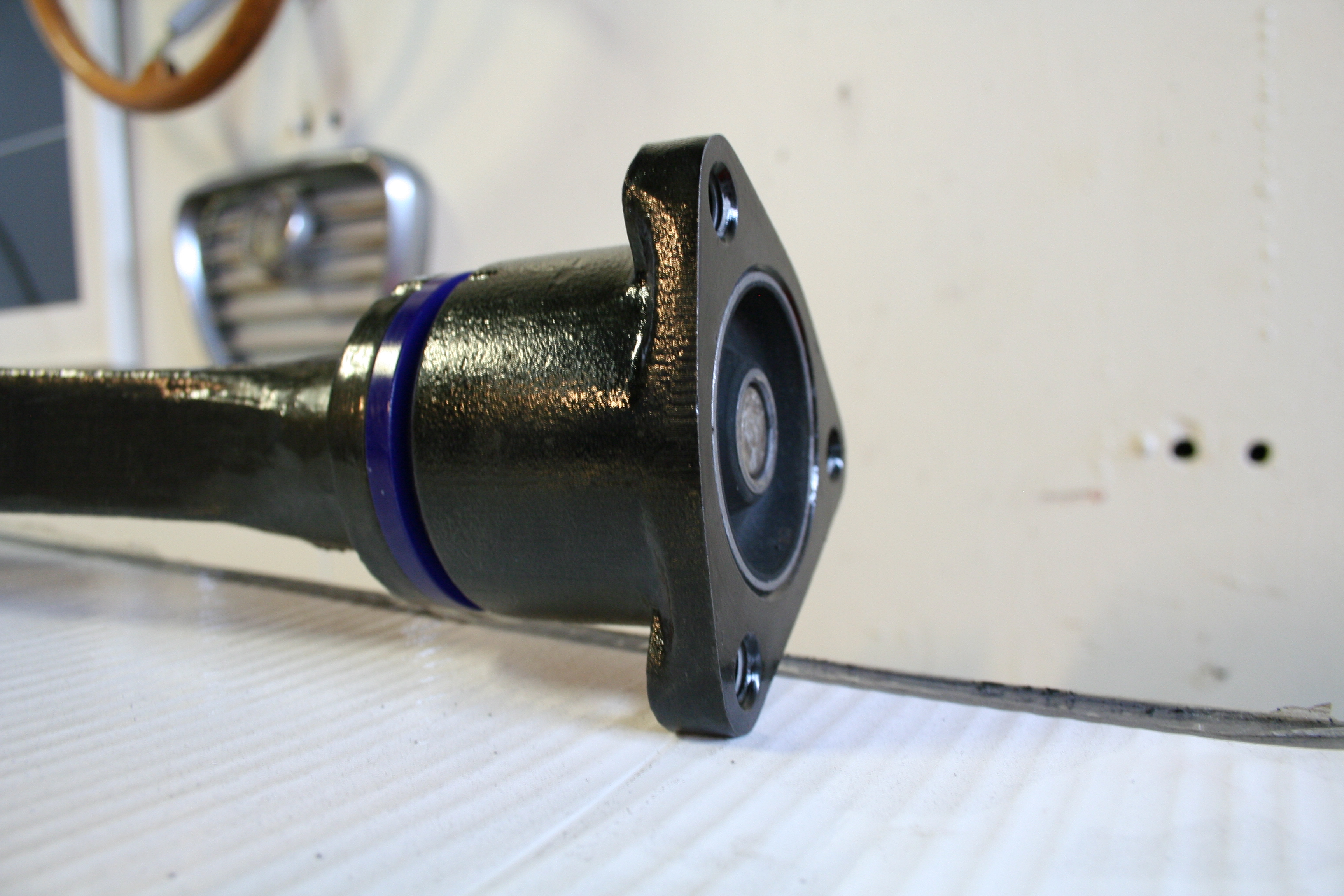 The famous T-bar all painted and fitted back in to the car, picture below shows the new bushings from Superflex fitted,