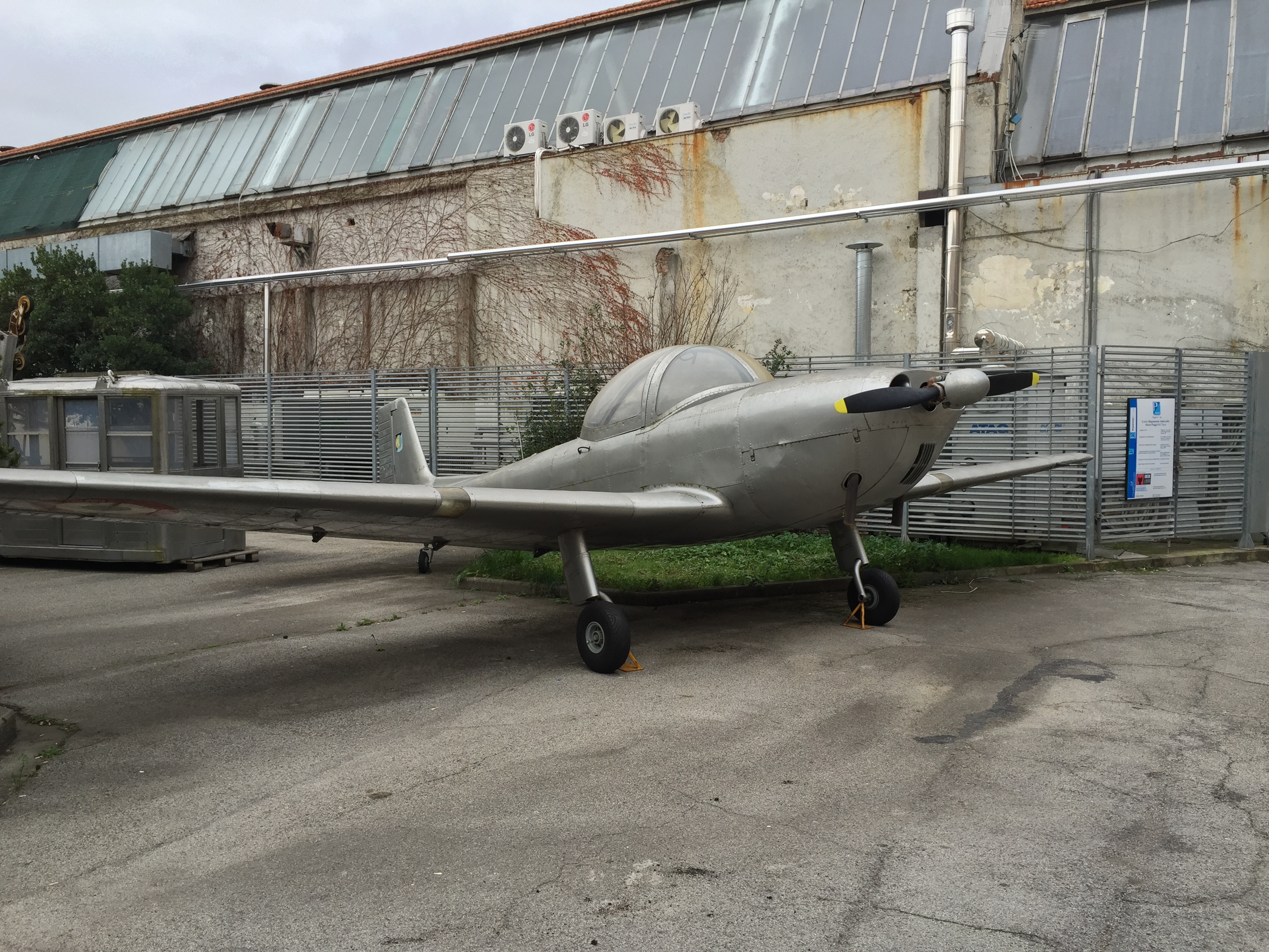 Coming up to the museum you are greeted in the courtyard by a P.148 acrobatic airplane and a beautiful tram that must have been quite a view when it was in operation.